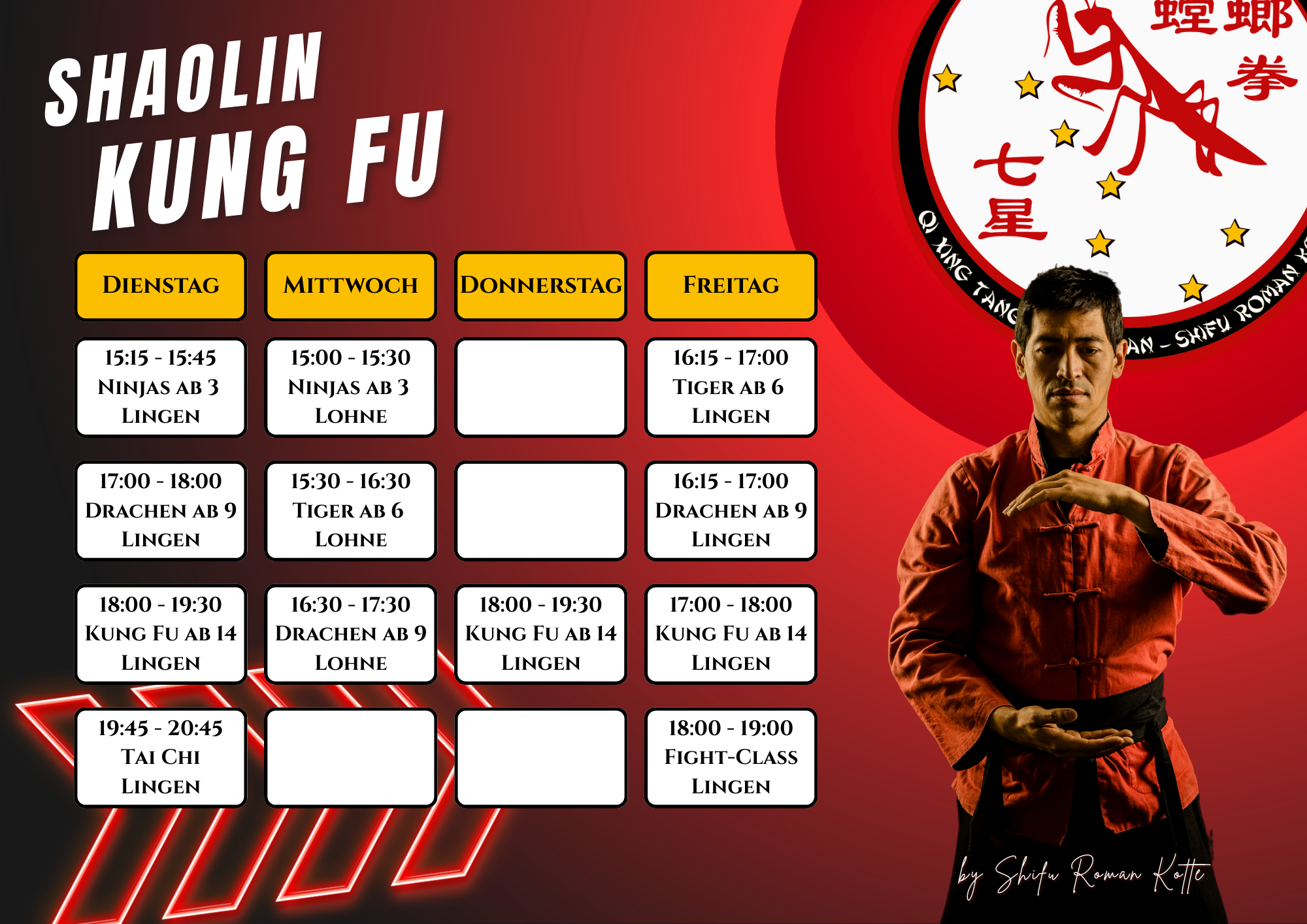 Ob Anfänger oder Fortgeschrittener, Kung Fu bietet eine spannende Reise zu mehr Gesundheit, Selbstdisziplin und innerer Harmonie. Erlebe die Faszination der Kampfkunst und werde Teil einer alten Tradition, die seit Generationen weitergegeben wird.